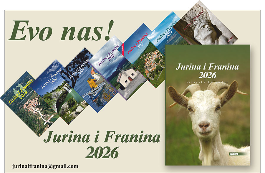 . U četvrtak, 27. studenog 2025., točno u podne bit će predstavljen novi svezak istarskog kalendara Jurina i Franina 2026 u pulskoj Gradskoj knjižnici, Kandlerova 39. Kalendar izlazi 103. godinu, što ga čini najdugovječnijom knjigom na hrvatskom jeziku koja izlazi do današnjeg dana na području Istre. Podsjećamo na novinski oglas iz 1992 godine: «Tko hoće da zna kada je koji Svetac, kakva će biti godina, što mu je u kojem mjesecu činiti... i ko hoće da nauči stotinu lijepih i korisnih stvari i tko želi, da se uz to još i pozabavi, neka odmah naruči NARODNI KOLEDAR ZA ISTRU JURINU I FRANINU za god. 1923. Cijena je 3 lire – trgovcima popust». Marketinški gledano, u ovih 103 godine ništa se bitnije nije promijenilo. Svezak za 2026. godinu tiskan je, uz potporu Upravnog odjela za kulturu i zavičajnost IŽ, na 224 stranice, formata 16,5 x 24 cm. Urednik je Robert Buršić, a izdavač 5do12 iz Poreča. Kalendar donosi šezdesetak priloga poznatih novinara, publicista, književnika i kulturnih djelatnika, dugogodišnjih suradnika, ali i novih autora. Teme se odnose na događaje, pojavnosti, ljude i predmete vezane za i oko Istre. Njeguje zavičajnost i istarsku čakavštinu, ne bavi se politikom u užem smislu i poštuje različitosti u pogledu temeljnih ljudskih sloboda. U ovogodišnjem broju, među ostalim, donosimo slikom i riječju – uz kalendar s imendanima – priču o 12 medaljona na Vratima Huma. Kao i svim dosadašnjim izdanjima, naša dva mladića, Jurina i Franina povidat će nam ki smo ča smo i kamo gremo. Sjetili smo se u rujnu preminulog dugogodišnjeg grafičkog urednika Alfija Klarića. Donosimo više razmišljanja eminentnih poznavatelja teme, o najznačajnijoj gospodarskoj djelatnosti u Istri – turizmu. Pišemo o prvom investitoru u istarski turizam, Paulu Kupelwieseru; o aktivnostima istarskih književnika, ali i i o murvi – slikovitom stablu, ukrasu naših korti koje nestaje, i o jarebici, korisnoj ptici koja je, nažalost već nestala. Donosimo reportaže o Taru, Svetoj Katarini, Labincima... Pišemo i o poslijeratnom bježanju Istrana preko granice, o strašnoj tragediji u rodilištu na Sušaku 1975. godine, o tome što i da li Istrani imaju koristi od bolnice u Izoli. Obilježavamo 60 godina djelovanja Anelida, isto toliko aktivni su i istarski folkloraši. Riječ imaju i Gustafi. Osam istarskih likovnih umjetnika su nam nacrtali svoje viđenje Jurine i Franine. Saznajemo i da su u Istri postojali uz štrige i štriguni, ali također otkrivamo da je u vlaku na željezničkoj stanici u Pazinu austrougarska ljubomorna prince zapucala u prašku glumicu, što je austrougarska vlast htjela zataškati. I još četrdesetak zanimljivih tema... Kalendar može biti lijepi dar za predstojeće blagdane: za dobru ruku. Cijena je 18 eura. Može se kupiti u knjižarama diljem Istre, ili naručiti online, bez dodatnih troškova, na jurinaifranina@gmail.com . |